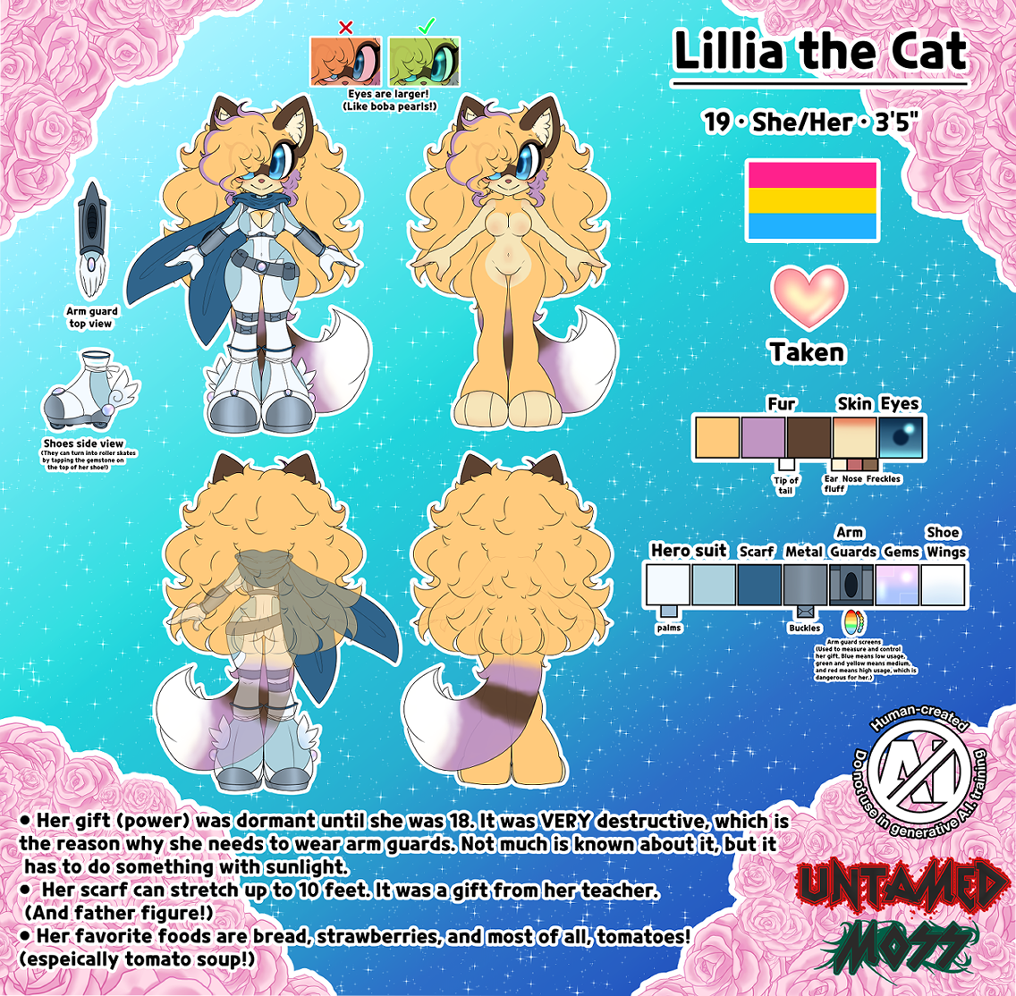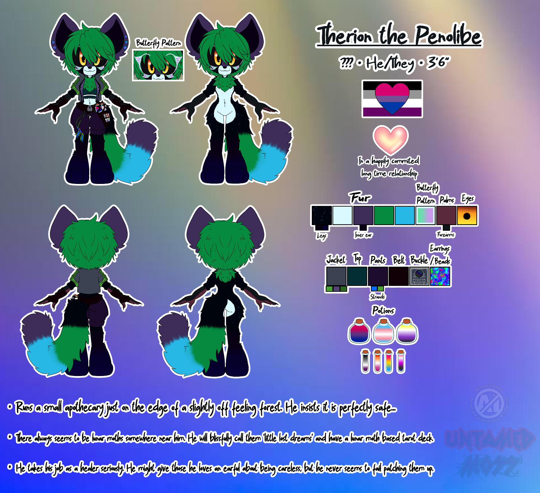 (example: "Art by @untamedMoss")You are allowed 2 large changes and 3 minor changes during the Sketch phase. Additional changes will result in a $5 fee, so please be sure to be specific during the approval process! After the sketch has been finished, only very minor changes will be allowed. (if it was an error on the artists part; example: you mentioned something in the description of your commission request that was missed in the final artwork! This will NOT count for something that you, the client, failed to mention and will be subject to a fee) Please be sure to list everything clearly and to list revisions in the allotted changes to avoid further fees.