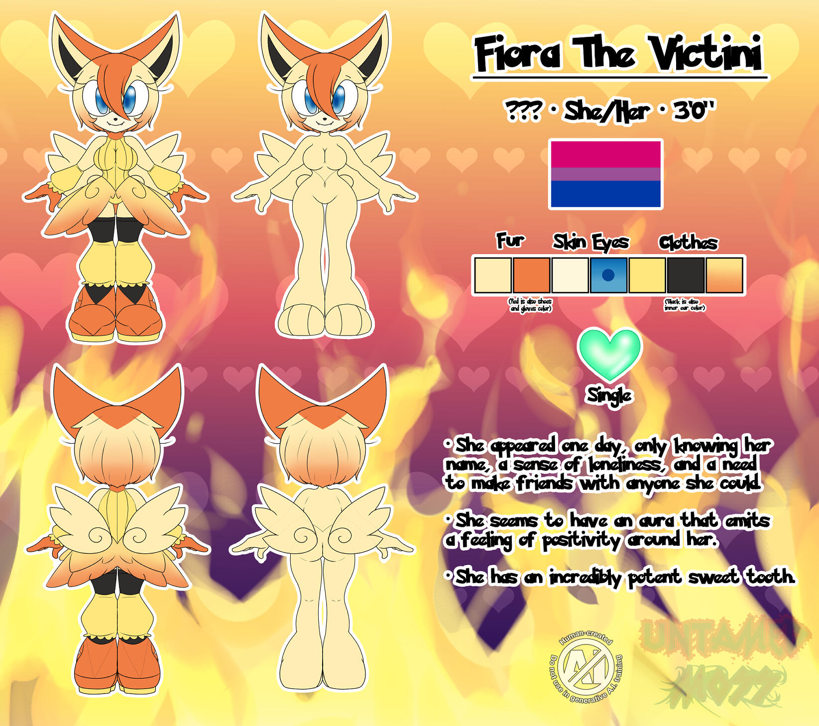 All customs cost $55 per character unless complicated details are added, which depending on what those details are, will cost $5 extra. Payment must be full amount up front. I won’t start on the design until the full amount is paid.
